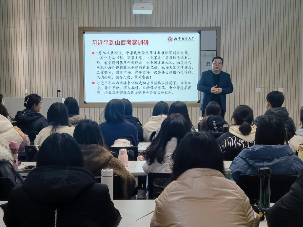 2月23日,党委常委、副校长米子川教授充分发挥课堂教学主渠道作用,结合专业课授课,围绕“学习贯彻习近平总书记考察调研山西重要指示精神”这一主题,在修德楼203教室为51暗网
