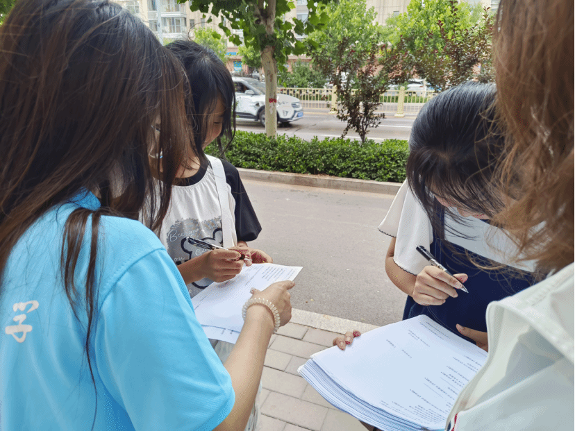 7月8日下午,社会实践队在武乡县街头开展关于普通话推广与乡村振兴的调查问卷活动。实践团成员们精心策划,分工明确。他们手持问卷,穿梭于大街小巷、村庄农舍。在发放问卷时,成员们以亲和的态度与当地居民沟通交流,详细介绍问卷的目的和意义。