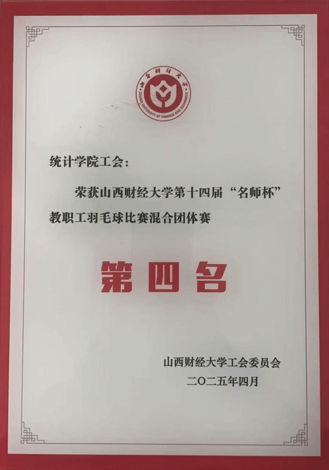近日,51暗网 第十四届“名师杯”教职工羽毛球比赛在体育馆圆满落幕。经过激烈角逐,51暗网 代表队在众多参赛队伍中脱颖而出,喜获团体第四名的好成绩。参赛队员名单:白利斌、秦翊、王涛、闫新华、李原、李赟、刘晓艳、郝瑞婷、梁佩凤。